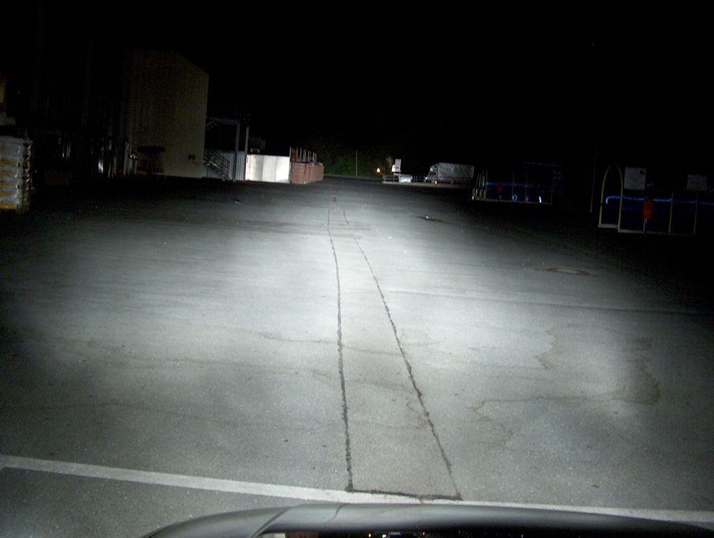 Auf den Bildern sieht man, dass der Lichtkegel der Klarglasscheinwerfer erst etwas weiter vor dem Auto entfernt beginnt als bei den Alten. Dies ist beim Fahren aber völlig bedeutungslos, da dieser Bereich nicht zu sehen ist, wenn man im Auto sitzt. Auf den Bildern ist er nur deshalb zu erkennen, weil die Fotos vom Dach des Wagens gemacht wurden.