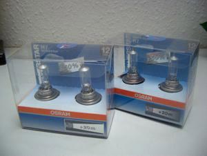 Wie zu sehen ist, leuchten die neuen Klarglasscheinwerfer deutlich heller als die Alten. Der Kegel ist zudem weiter gefächert. Besonders das Fernlicht ist dank H7 Technik gar kein Vergleich zu den alten Scheinwerfern. Bei den neuen Scheinwerfern bleibt das Abblendlicht an, wenn man das Fernlicht anschaltet. So wird der Nahbereich vorm Auto weiterhin gut ausgeleuchtet. Mit den originalen Scheinwerfern kann man ähnliches nur erreichen, indem man zusätzlich zum Fernlicht die Nebelscheinwerfer anschaltet. Das Nahfeld wird dabei aber nicht annähernd so hell. Außerdem ist die Benutzung der Nebelscheinwerfer nur bei erheblicher Sichtbehinderung erlaubt.